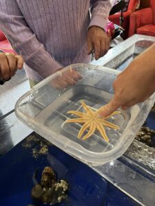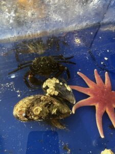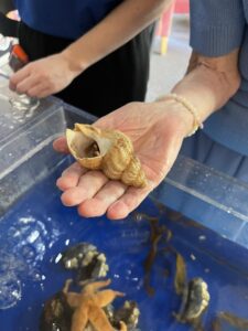The interactive rock pool allowed us all to gently explore the textures of sea urchins, starfish, anemones and muscles! We even got a rare glimpse of a spider crab — known for their long legs and curious movements and were able to hold a Hermit crab and a shore crab.