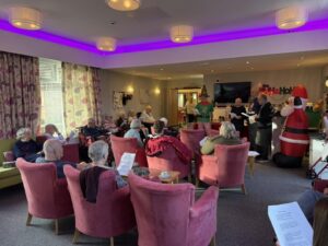 We were then delighted to welcome Arkscroll Lodge, who joined us for a wonderful Christmas sing-along and kindly gifted presents to our residents —bringing lots of smiles and festive cheer.