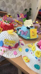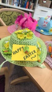 Throughout March, Pauline has been working with the residents on a Monday afternoon to help them make their Easter Bonnets!