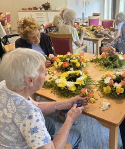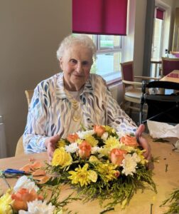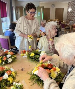 Flower Arranging by Rachel Cookson | Apr 9, 2025 | Hewlett Court News and Events The ladies took to some flower arranging with Rita on Wednesday 9th April, ready for the ELMC Spring Party event on Friday 11th April. They have created amazing arrangements that will look beautiful on the tables.