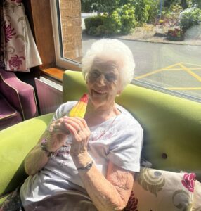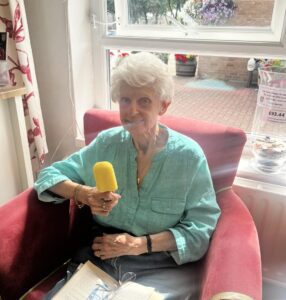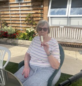 Fun in the Sun by Rachel Cookson | Aug 12, 2025 | Hewlett Court News and Events The ladies and gents have enjoyed relaxing in the courtyard whilst the sun has been shining. Ice lollies were handed out to keep everyone cool and hydrated in the glorious weather. Sunny days make us all smile and lift our moods.