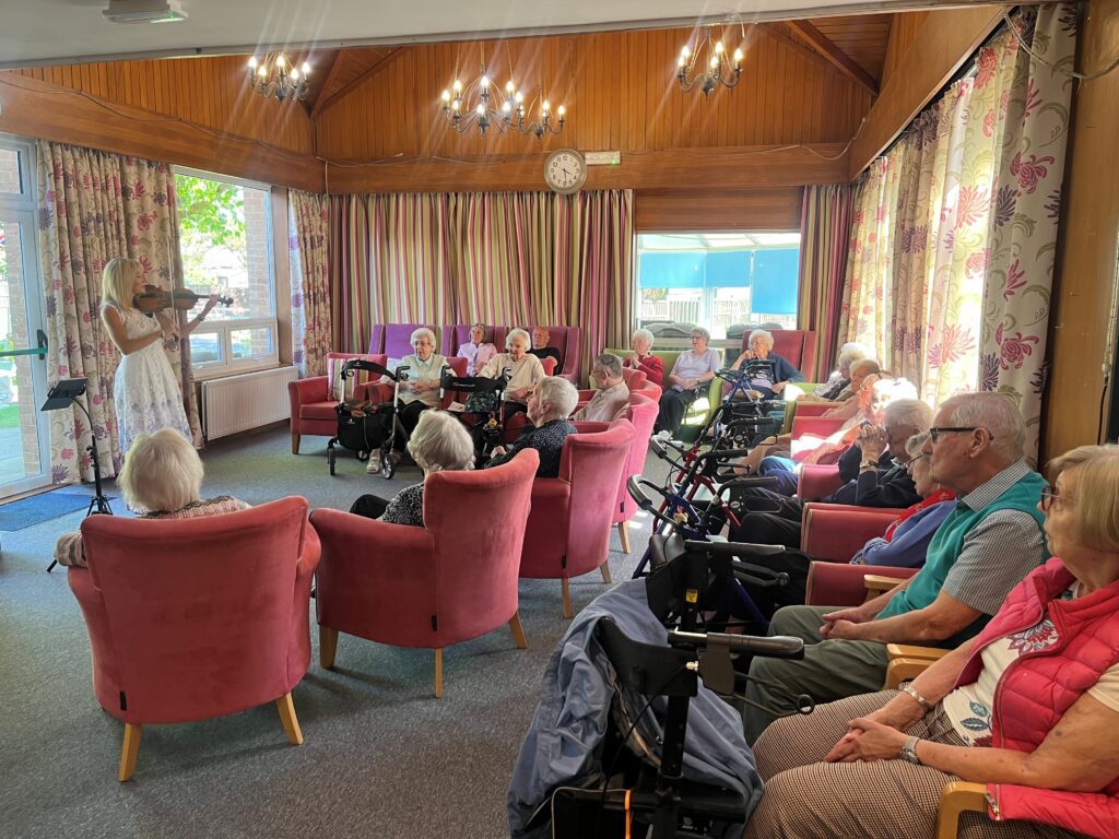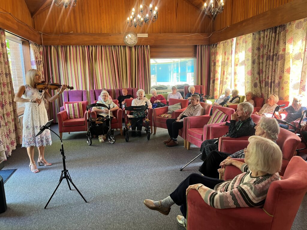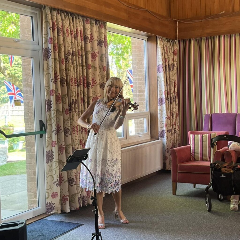 Katie Fiddlestix by Rachel Cookson | May 9, 2025 | Hewlett Court News and Events The finish off a wonderful week, we had our favourite violinist, Katie Fiddlestix performing on Friday 9th May. Everyone enjoyed reminiscing with their favourite songs.