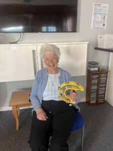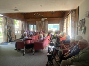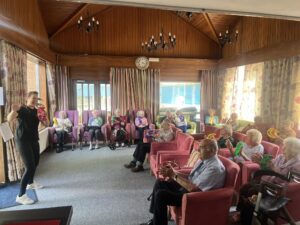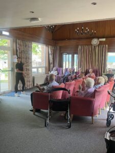 With a range of exercises incorporated into her performance, the ladies and gents enjoyed a singalong as they did gentle armchair exercises.