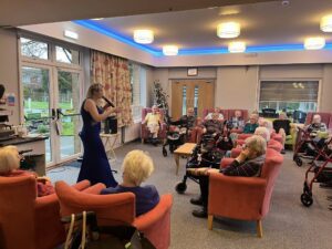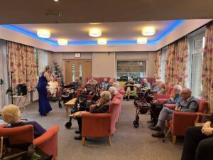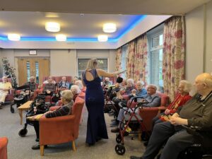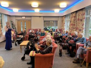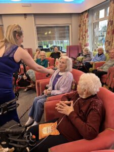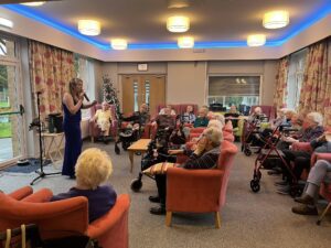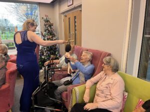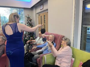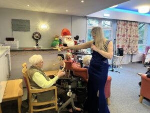 With lots of wonderful interactions with the ladies and gents, everyone was full of praise for her show. Graham joined Poppy for a lovely duet of “We Wish You a Merry Christmas”, Bill enjoyed a boogie with her on the dance floor and Margaret won ‘Name that Tune’