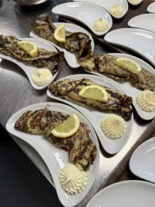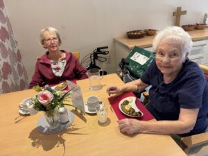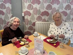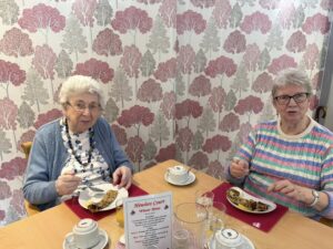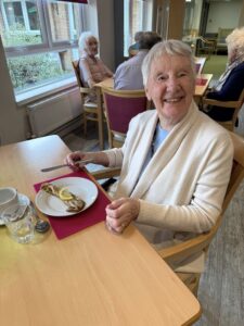 Lunch brought a special Shrove Tuesday treat – delicious pancakes filled with cherry filling and served with cream on the side, freshly prepared by our amazing cook, Mel. They went down a treat!