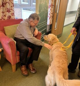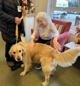 Maggie the Therapy Dog and owner Gill came from Therapy Dogs Nationwide on Wednesday 3rd December — and brought many smiles!