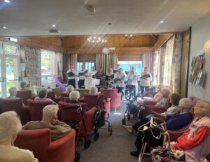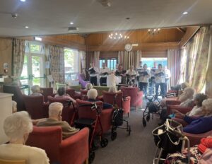 Veteran’s Choir by Rachel Cookson | Apr 29, 2025 | Hewlett Court News and Events The Veterans Choir came to sing for the residents on Tuesday 29th April. A wonderful afternoon was had by all, joining in the well-known songs that were sung.