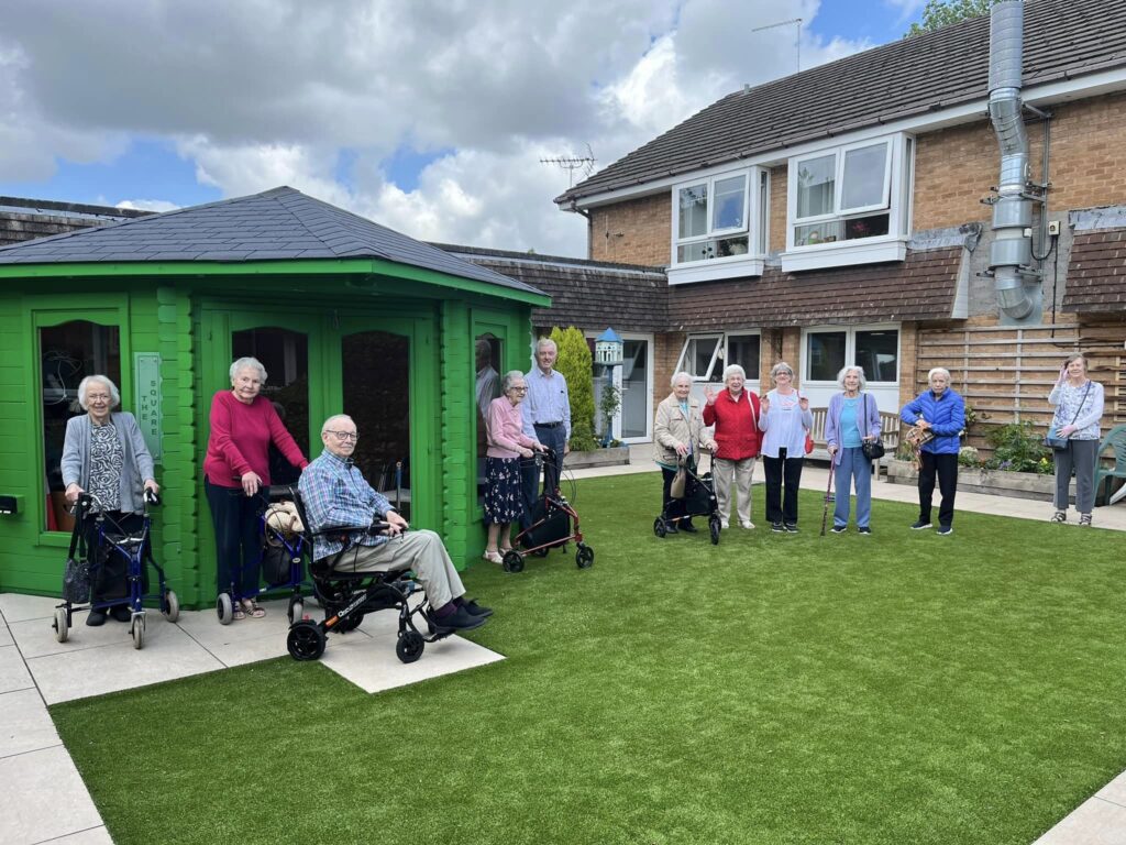 The ladies and gents gathered in the courtyard on Wednesday 5th June for the big reveal of the new water feature!
